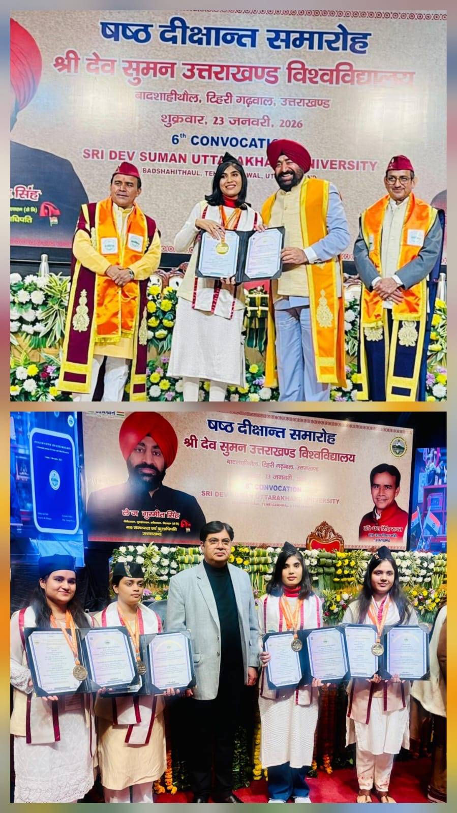 विश्वविद्यालय के ऋषिकेश कैम्पस में आयोजित छठे दीक्षांत समारोह में महामहीम राज्यपाल, उच्च शिक्षा मंत्री एवं विश्वविद्यालय के कुलपति महोदय के द्वारा छात्राओं को उपाधि व गोल्ड मैडल देकर सम्मानित किया गया।