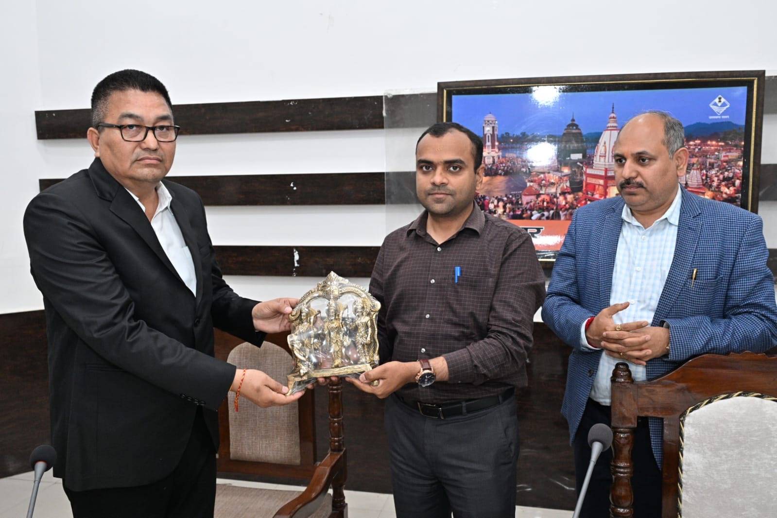 जिलाधिकारी एवं मुख्य विकास अधिकारी द्वारा शॉल एवं स्मृति चिन्ह भेंट कर श्री नेगी की भगवान से दीर्घ आयु की कामना की।