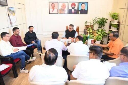 देहरादून, 13 सितम्बर। कैबिनेट मंत्री गणेश जोशी ने शनिवार को कैंप कार्यालय में सिंचाई विभाग के अधिकारियों के साथ बैठक कर मसूरी विधानसभा क्षेत्र में चल रहे विकास कार्यों की प्रगति की समीक्षा की।