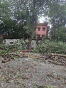 कार्यवाही तलवार लटकती देख वन विकास निगम के अधिकारियों ने उसी अनुमति की कार्यवाही के साथ ही पेड़ कटान, छपान की कार्यवाही कर दी है।