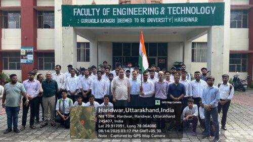 आजादी के अमृत महोत्सव के अंतर्गत गुरुकुल कांगड़ी (डीम्ड टू बी यूनिवर्सिटी) के अभियंत्रिकी एवं प्रौद्योगिकी संकाय में गुरुवार को “हर घर तिरंगा” कार्यक्रम बड़े उत्साह और देशभक्ति की भावना के साथ संपन्न हुआ। संकाय की राष्ट्रीय सेवा योजना (NSS) इकाई के स्वयंसेवकों ने हाथों में तिरंगा थामे संकाय प्रांगण से भव्य रैली निकाली। रैली के दौरान विद्यार्थियों ने “भारत माता की जय”, “वंदे मातरम्” और “राष्ट्र प्रथम” जैसे गगनभेदी नारे लगाए, जिससे वातावरण पूरी तरह देशभक्ति के रंग में रंग गया।