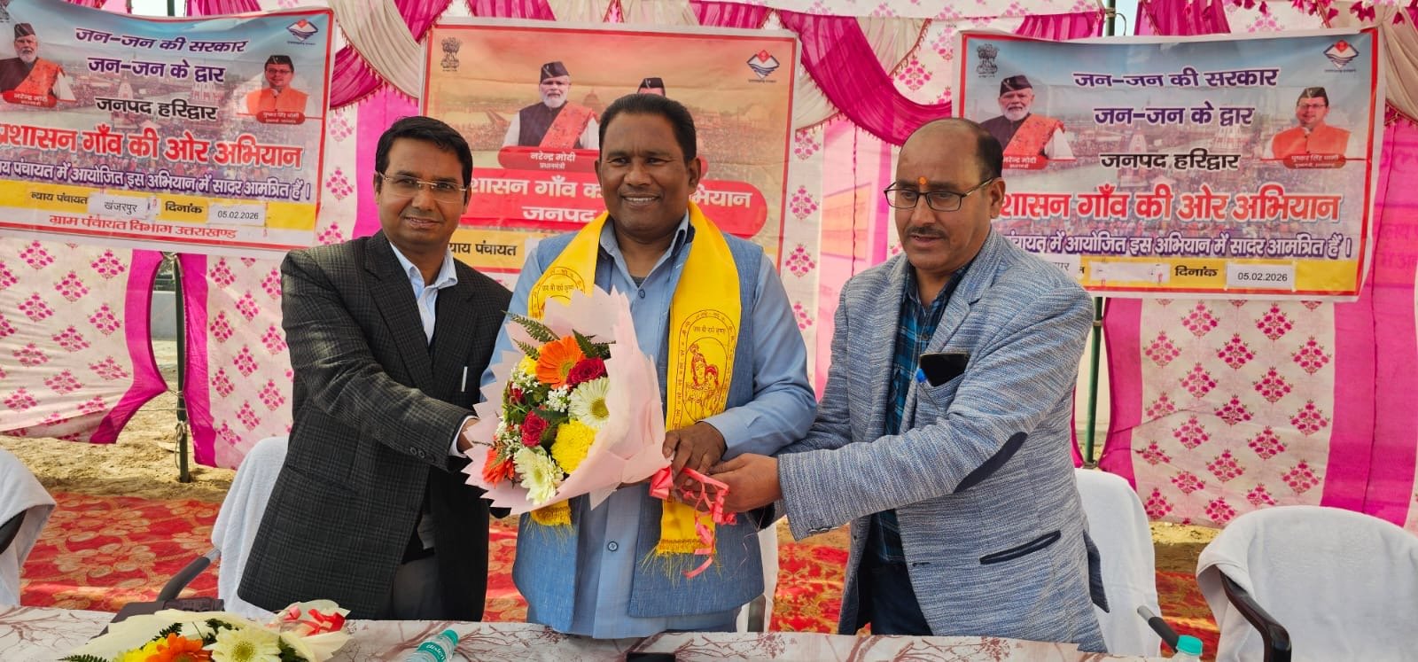 कार्यक्रम को संबोधित करते हुए उपाध्यक्ष, समाज कल्याण योजनाएं अनुश्रवण समिति (राज्यमंत्री स्तर)देशराज कर्णवाल ने कहा कि प्रदेश के यशस्वी मुख्यमंत्री श्री पुष्कर सिंह धामी जी के निर्देशानुसार प्रदेश की सभी न्याय पंचायतों में यह अभियान चलाया जा रहा है। इसका उद्देश्य विभिन्न विभागों द्वारा संचालित जन-कल्याणकारी योजनाओं का लाभ पात्र नागरिकों तक पहुँचाना है तथा उनकी समस्याओं का त्वरित गति से समाधान सुनिश्चित करना है।