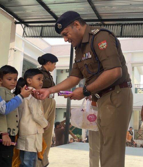 आज दिनांक 14.11.2025 को वरिष्ठ पुलिस अधीक्षक हरिद्वार बाल दिवस के अवसर पर प्रातः पुलिस लाइन रोशनाबाद में पुलिस मॉडल स्कूल मे पहुंचे तथा वहां के नन्हे मुन्ने बच्चों के साथ बातचीत कर सभी बच्चों एवं विद्यालय प्रशासन को बाल दिवस की बधाई देते हुए बच्चों को चॉकलेट दी गई l